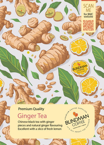 Our ginger tea is a blend of black China tea with ginger pieces and ginger flavouring.
